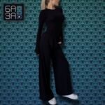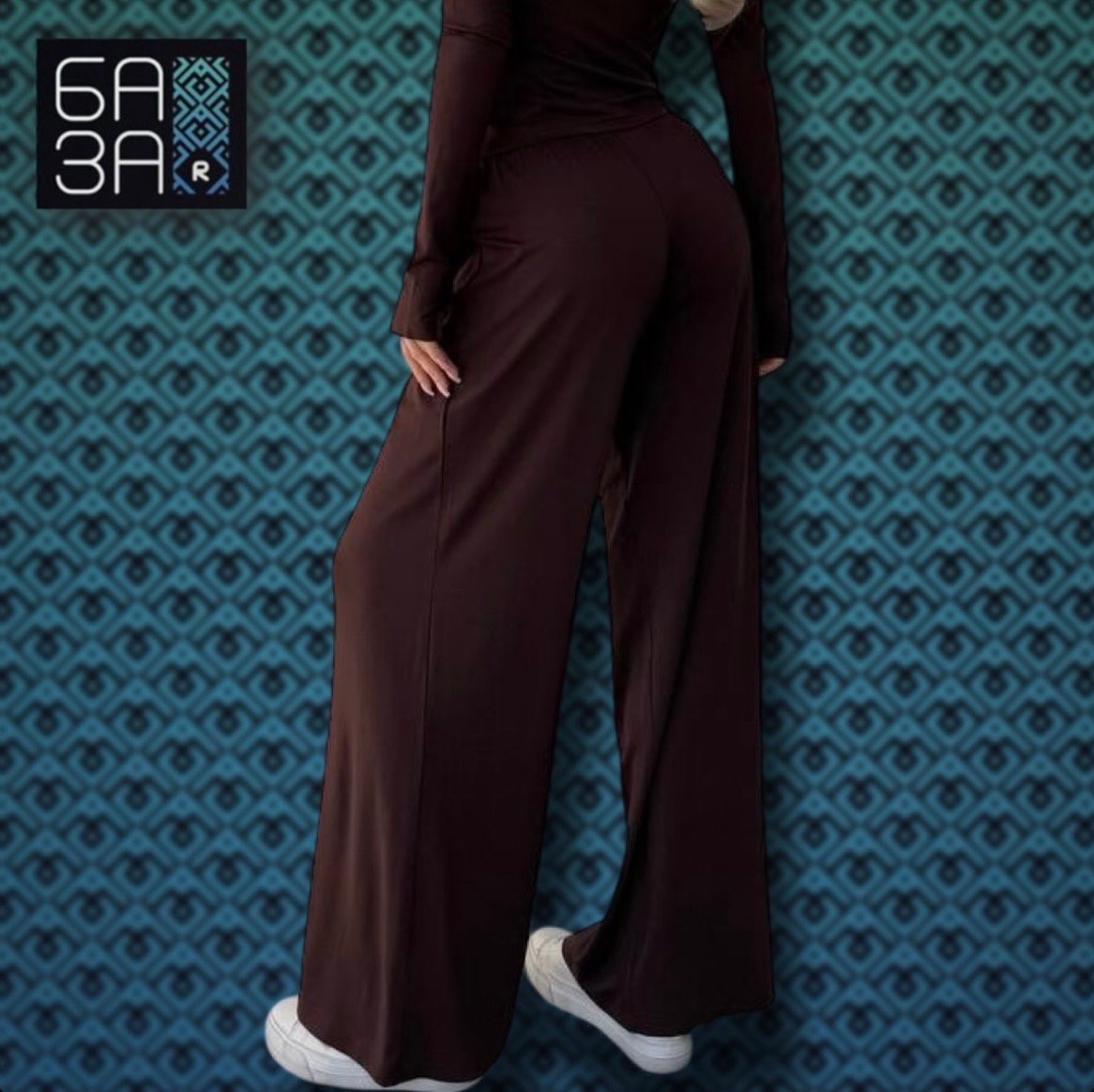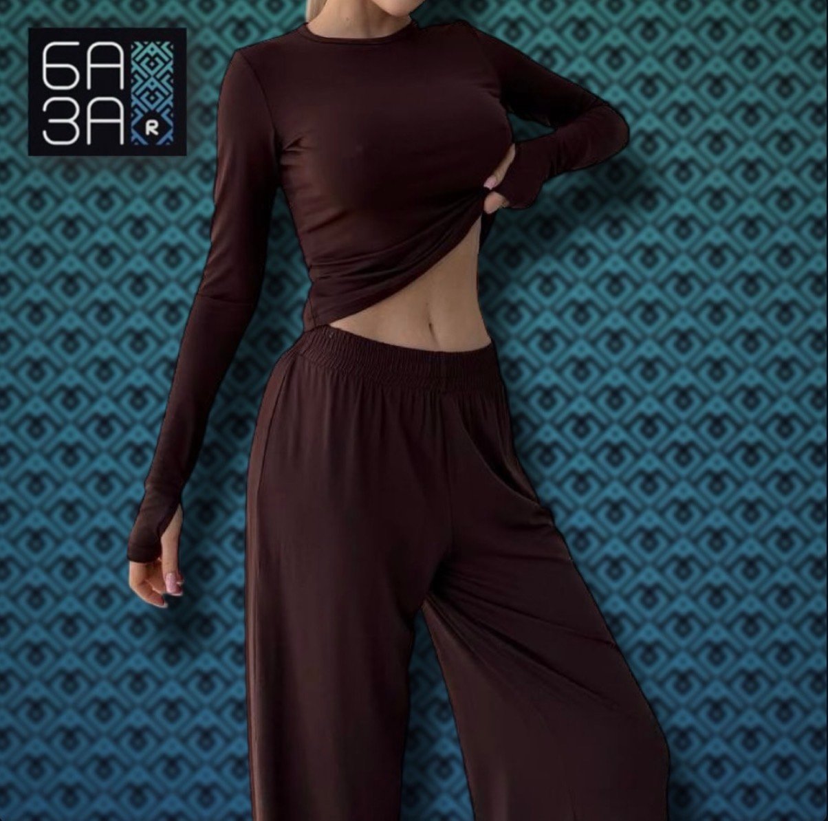 ❣️Костюм двійка, штани палаццо на високій посадці, лонгслів з вирізами для пальців